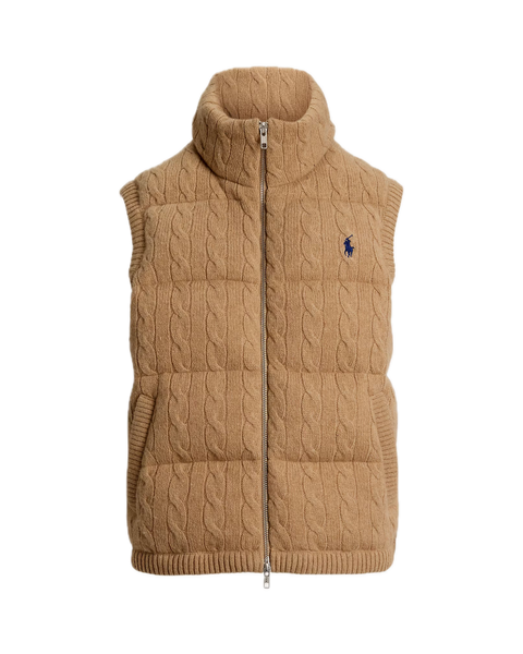 Questo gilet unisce la morbidezza della lana e del cashmere italiano a un design elegante e funzionale. La trapuntatura raffinata si sposa con la classica lavorazione a trecce, mentre il collo a lupetto assicura calore e stile. La chiusura con doppio cursore facilita la vestibilità, e il pony ricamato sul torace aggiunge un dettaglio distintivo e riconoscibile. Perfetto per chi cerca comfort e un tocco di classe senza tempo.