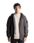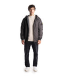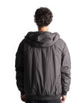 CRINCLE REPS - COLORE: PIOMBO - COMPOSIZIONE: 100% POLIAMIDE - VESTIBILITÀ: IL MODELLO IN FOTO È ALTO 180CM ED INDOSSA LA TAGLIA L - INFORMAZIONI: BOMBER CAPPUCCIO, DETTAGLIO LOGO, DETTAGLIO TASCHE, IMPERMEABILE