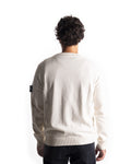 MAGLIA STRETCH - COLORE: BIANCO - COMPOSIZIONE: 88% LANA VERGINE, 12% POLIESTERE - VESTIBILITÀ: IL MODELLO IN FOTO È ALTO 180CM ED INDOSSA LA TAGLIA L - INFORMAZIONI: MAGLIA STRETCH, GIROCOLLO, DETTAGLIO LOGO