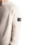 VANISE - COLORE: AVORIO - COMPOSIZIONE: 57% LANA VERGINE, 35% COTONE, 7% POLIAMIDE, 1% ELASTN - VESTIBILITÀ: IL MODELLO IN FOTO È ALTO 180CM ED INDOSSA LA TAGLIA L - INFORMAZIONI: MAGLIA VANISE, DETTAGLIO TESSUTO, GIROCOLLO, DETTAGLIO LOGO