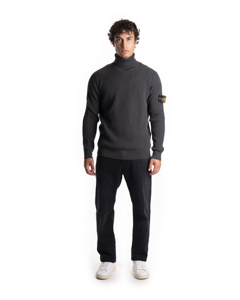 DOLCEVITA COSTA - COLORE: PIOMBO - COMPOSIZIONE: 100% LANA VERGINE - VESTIBILITÀ: IL MODELLO IN FOTO È ALTO 180CM ED INDOSSA LA TAGLIA L - INFORMAZIONI: DOLCEVITA COSTE, DETTAGLIO COLLO, DETTAGLIO LOGO
