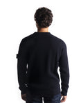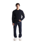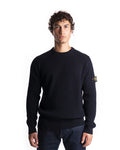GIROCOLLO - COLORE: NAVY - COMPOSIZIONE: 100% LANA VERGINE - VESTIBILITÀ: IL MODELLO IN FOTO È ALTO 180CM ED INDOSSA LA TAGLIA L - INFORMAZIONI: GIROCOLLO, DETTAGLIO LOGO, DETTAGLIO TESSUTO COSTE