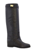 Stivale in pelle con lucchetto oro apribile e zeppa interna di 3,5 cm