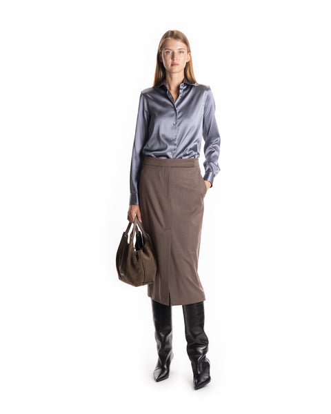 CAMICIA PINA - COLORE: GRIGIO - COMPOSIZIONE: 96% SETA, 4% ELASTAN - VESTIBILITÀ: LA MODELLA IN FOTO È ALTA 178CM ED INDOSSA LA TAGLIA 40 - INFORMAZIONI: CAMICIA SETA