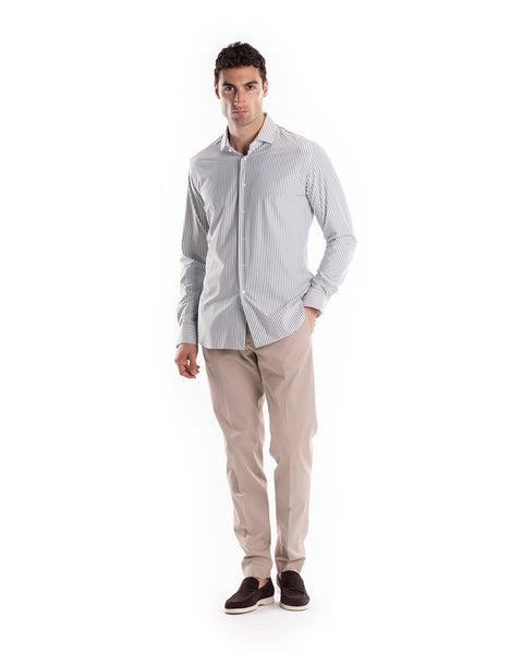 CAMICIA ACTIVE RIGATA - COLORE: CORDA - COMPOSIZIONE: 86%POLIAMMIDE 14%ELASTANE - ALTRE INFO: ELASTICIZZATA, BIANCA CON RIGHE COLOR VERDE SOTTILI - IL MODELLO IN FOTO È ALTO 190CM ED INDOSSA LA TAGLIA 42