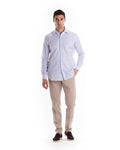 CAMICIA TRAVEL - COLORE: BIANCO - COMPOSIZIONE: 100%COTONE - ALTRE INFO: MORBIDA, BIANCA CON RIGHE AZZURRE - IL MODELLO IN FOTO È ALTO 190CM ED INDOSSA LA TAGLIA 42