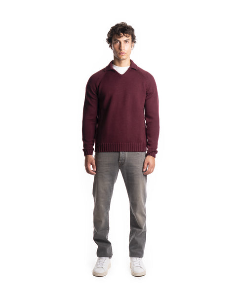 POLO DERBY - COLORE: BOREDEAUX - COMPOSIZIONE: 100% LANA VERGINE - VESTIBILITÀ: IL MODELLO IN FOTO È ALTO 180CM ED INDOSSA LA TAGLIA 48 - INFORMAZIONI: POLO DERBY